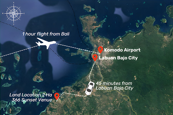366 Sunset Venue is a location that will be developed to become a place for various tourism events such as art performances, cultural festivals, music concerts, special event celebrations and conference meetings. This total area is ​​2 hectares and able to accommodate more than 2000 visitors. The facility needs development since Labuan Bajo has recently become an international premium destination in the world instead of Bali and often used as a place to hold large-scale events. The open facilities facing on sea and sunset as views its not exist yet in Labuan Bajo so we need to provide an opportunity to develop this facility that can be an option for anyone who wants to hold an event that is always held to compliment Labuan Bajo’s for now and future tourism. 366 Sunset Venue has a sloping contour facing the sea and gets a panoramic gorgeous sunset every day. The planning of this project is that all parts of the venue will be surrounding various facilities such as day clubs, restaurants, cafes, souvenir shops, hotels. This location is only 15 km away from Komodo airport, Labuan bajo. It only takes 30 minutes from the airport and Labuan Bajo city. If investor are interesting to know more about this project, please do not hesitate to contact us, we inviting you as an investor to working together as a business partner to built and developing, Please kindly to contact us to discuss for further cooperation through Whatsapp +62811880366 or email: info@366property.com