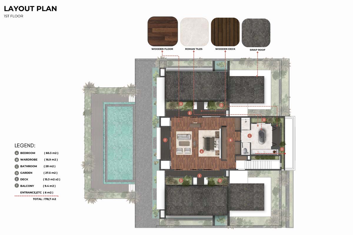The architects combined contemporary design with the essence of Indonesian culture, creating a seamless transition between indoor and outdoor spaces. The use of wood, stone, and other natural materials truly enriches the experience, making this villa both luxurious and closely connected to its surroundings.